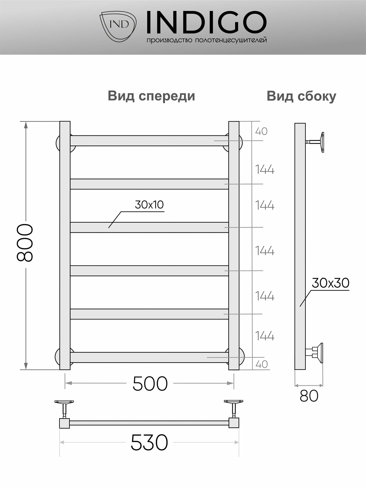 Полотенцесушитель Nova 80/50 Magnetic Grey INDIGO приваренный угол с гайкой