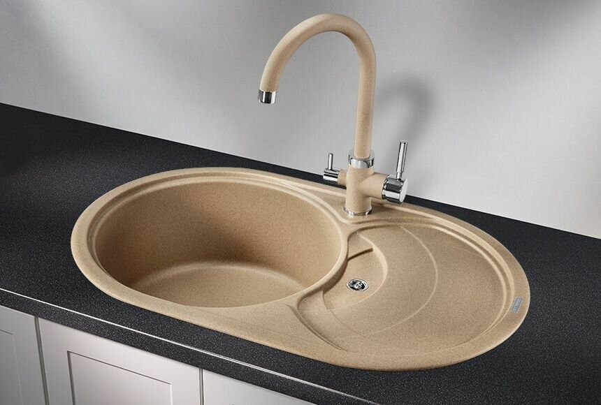 Цена для г. Курчатов. Мойка для кухни Granula Gr-7801 песок, овальная С одной чашей Размер чаши: 415x415x195 мм Установочный проем: 755x475 мм Толщина материала 10 мм Сливное отверстие 3 1/2" (90 мм) Отверстие перелива расположено на крыле мойки В комплект входит сливная арматура 3 1/2" (90 мм) с переливом и сифоном Кухонные мойки «Granula» производятся из высококачественного композитного материала, основой которого является кварц - 80% и метакрилированные полиэфирные смолы - 20%. Магазины в городе Курчатов смотрите ниже