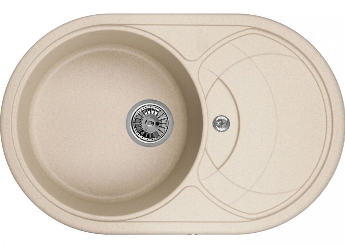 Кухонная мойка кварцевая Granula GR-7801 овальная с крылом, врезная, чаша D 420, цвет песок (7801sa)