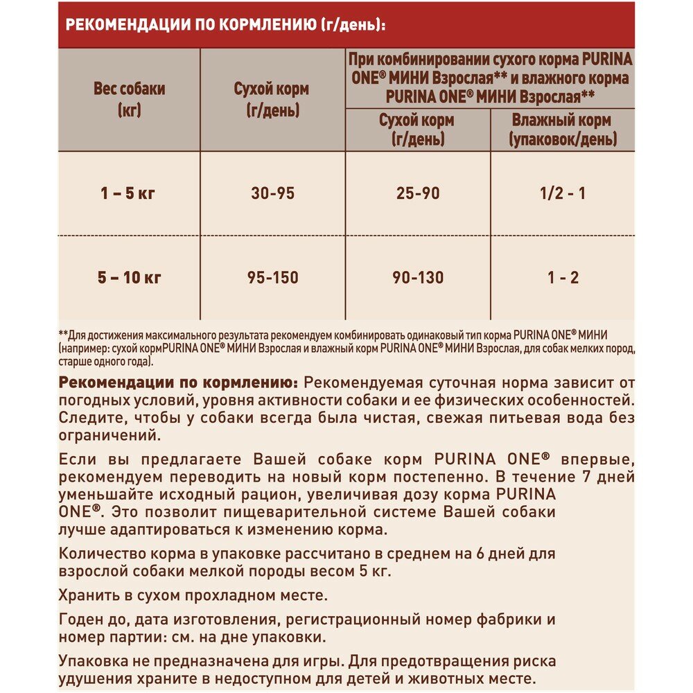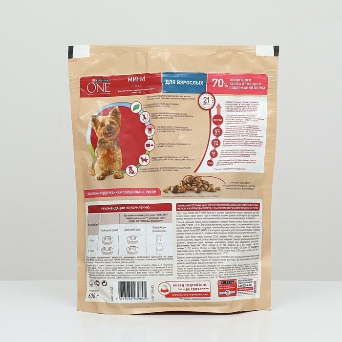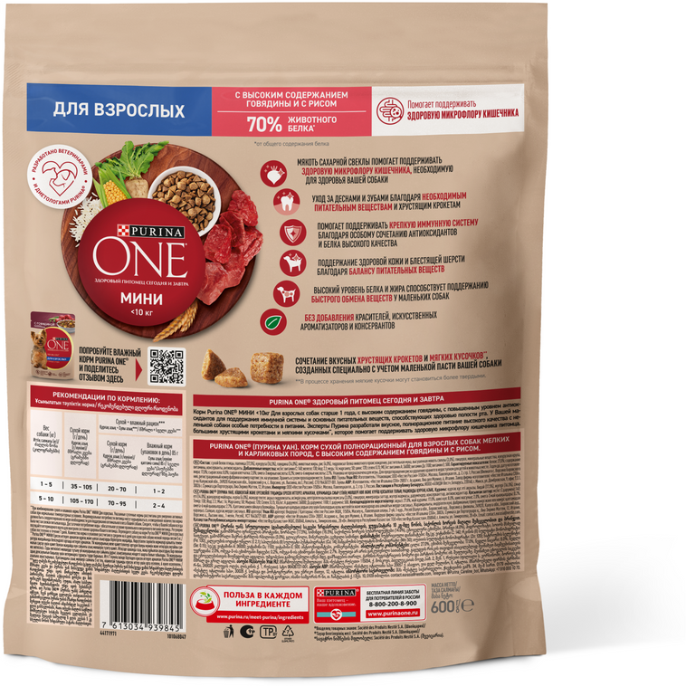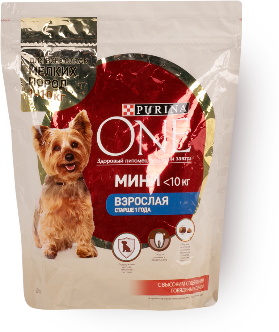 PURINA ONE мини взрослая для взрослых собак маленьких пород с говядиной и рисом (0,6 кг)