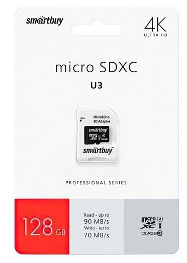Карта памяти SmartBuy microSDXC 128 ГБ Class 10, UHS Class 1, R/W 90/25 МБ/с, 1 шт., черный