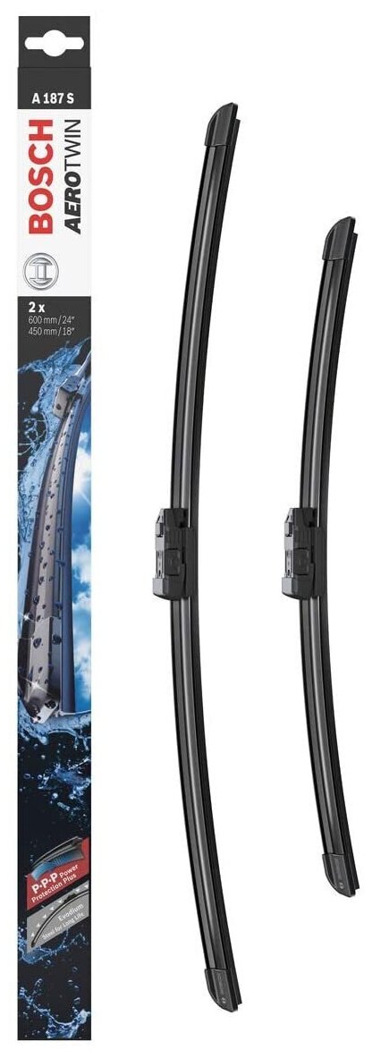 Щетки стеклоочистителя Bosch Aerotwin 600мм (24") + 450мм (18") бескаркасная, всесезонная, крепление Push Button, комплект 2 шт, арт. 3 397 007 187
