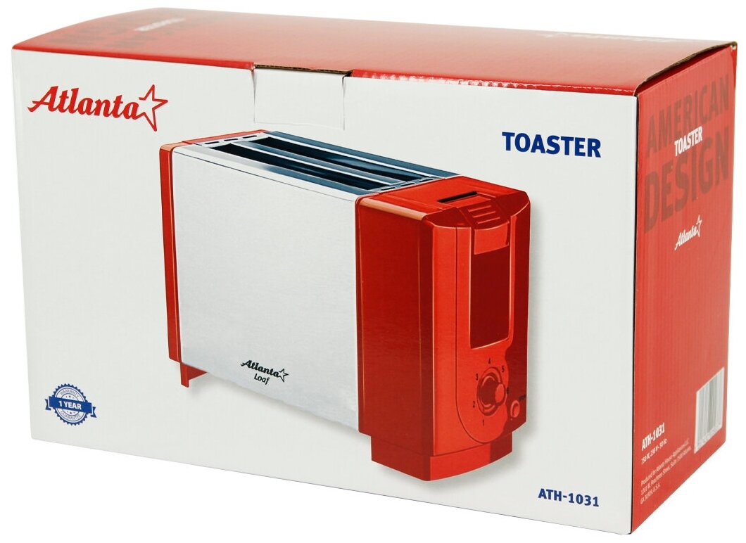 Atlanta Тостер Atlanta ATH-1031, серебристый/красный тостер в Курчатов