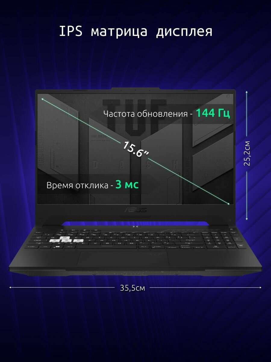Ноутбук ASUS TUF Dash F15 FX517ZR-F15 Intel i7-12650H/16G/512G SSD/15,6" FHD(1920x1080) 144Hz/RTX 3070 8G/Win11 en/rus Черный, 90NR0AV3-M001V0