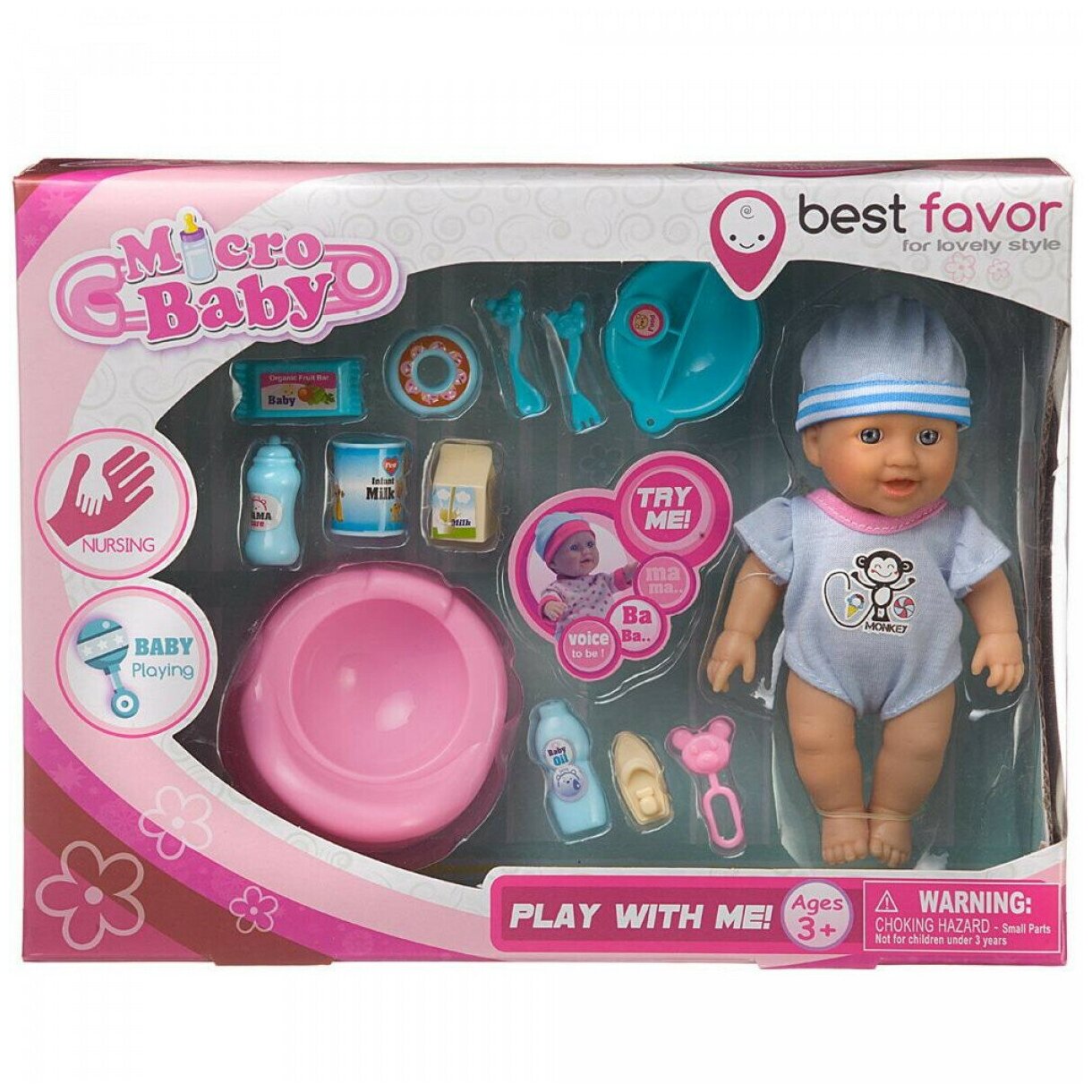 JunfaToys Пупс Micro Baby 15 см с аксессуарами голубой JunfaToys 2803/голубой
