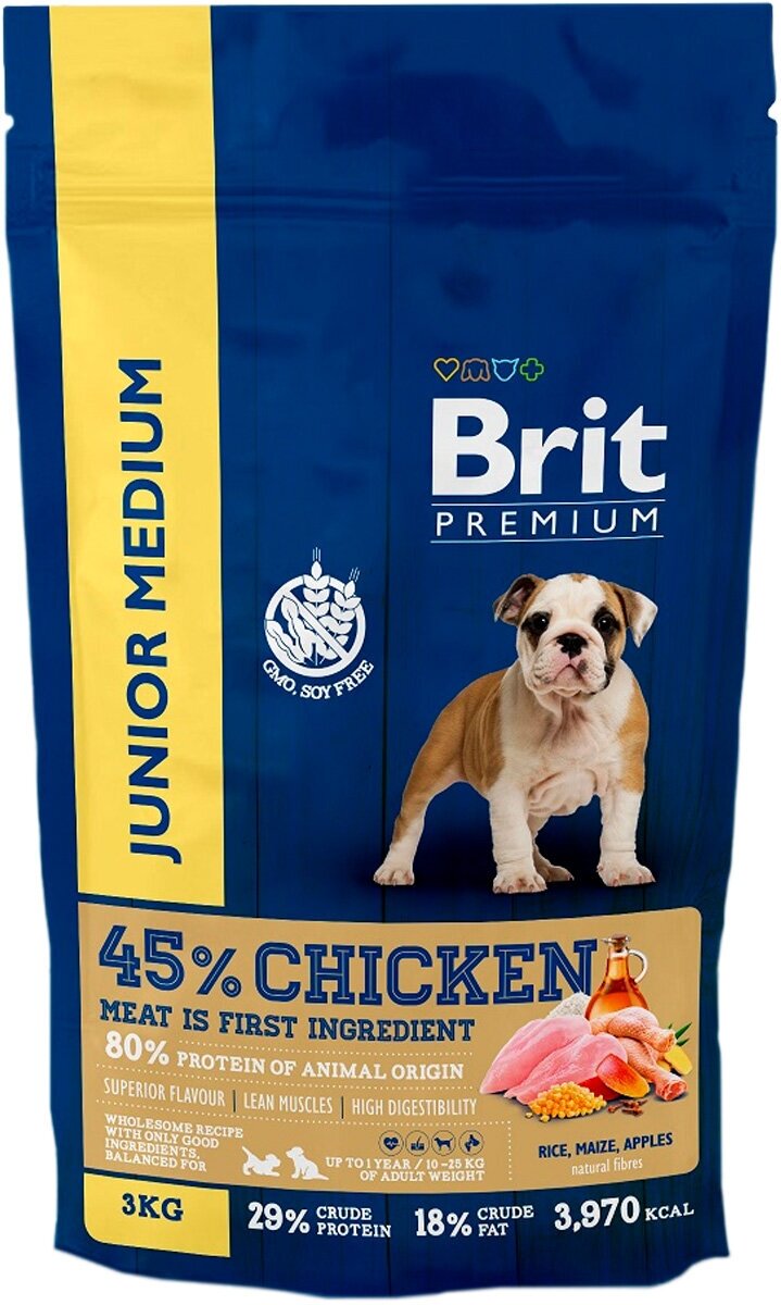 Сухой корм Brit Premium Puppy and Junior Medium для щенков и молодых собак с курицей, 3 кг