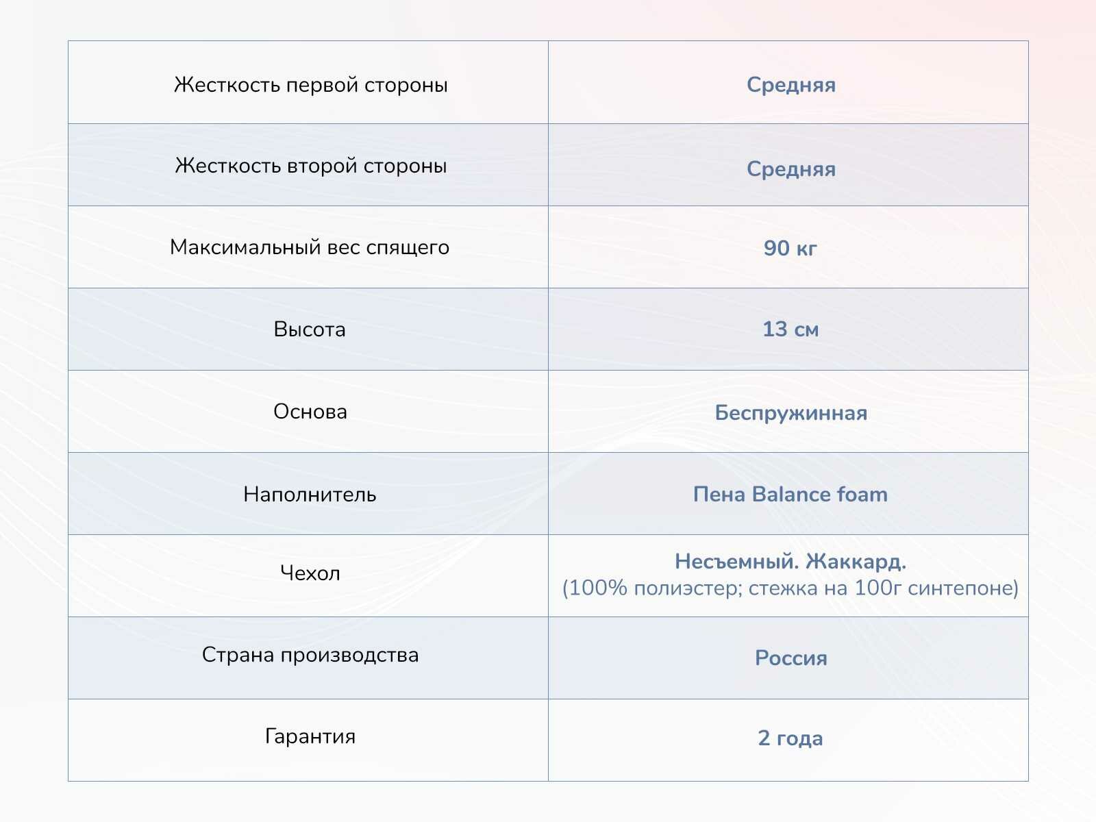 Матрас 90х145 Dimax PracticBasis 13, беспружинный, cредне-жёсткий, пенополиуретан, односпальный 145х90