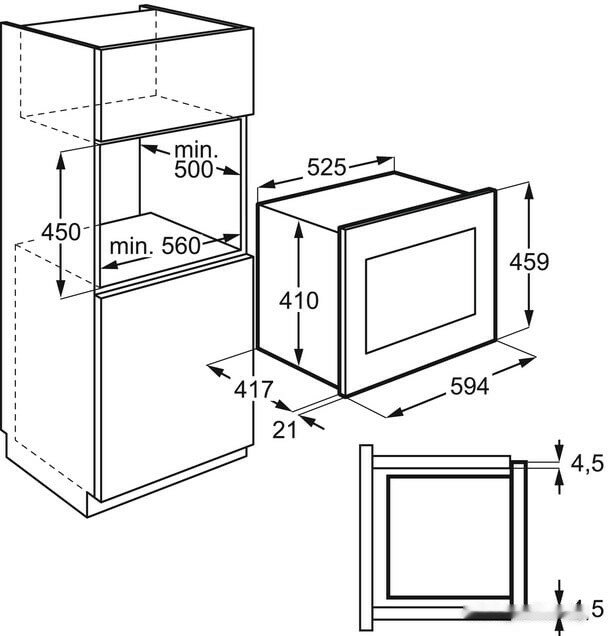 - Размеры для встраивания (ВхШхГ)