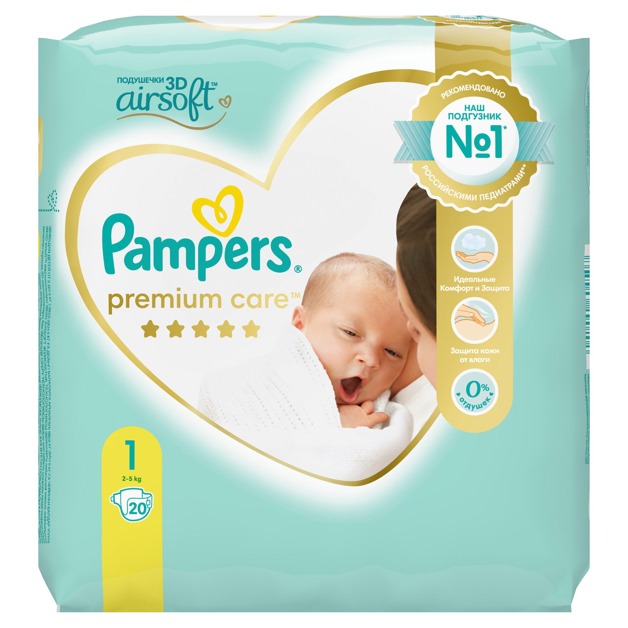 Подгузники Pampers Premium Care, размер 1, 20 шт, 2-5 кг