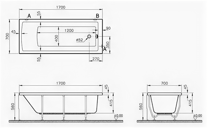 Акриловая ванна 170x70 см Vitra Neon 52530001000