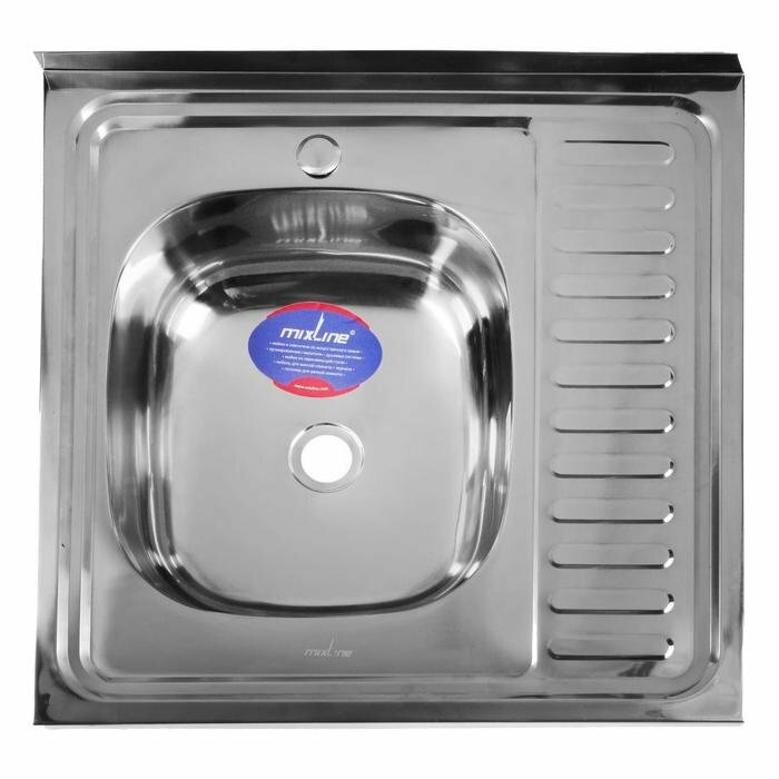 Мойка кухонная MIXLINE 527967, накладная, толщина 0.4 мм, 60х60х16 см, левая, выпуск 1 1/2"