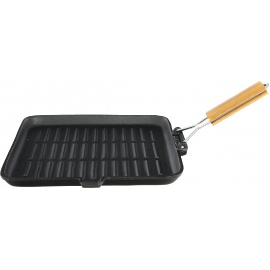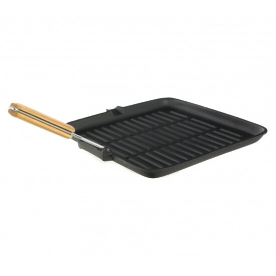 Сковорода-гриль чугунная с дерев складной ручкой, квадратной формы, PADELLA, 28*28 см