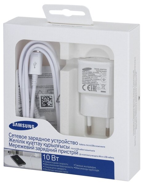 Сетевое зарядное устройство Samsung EP-TA20 + кабель microUSB, 10 Вт, белый