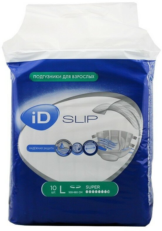 Подгузники для взрослых iD Slip Super, L, 7.5 капель, 100-160 см, 1 уп. по 10 шт.