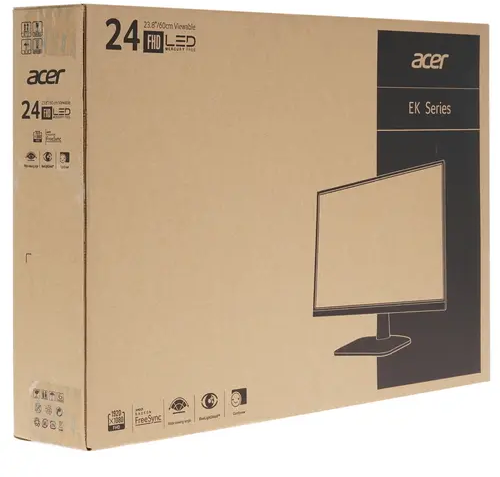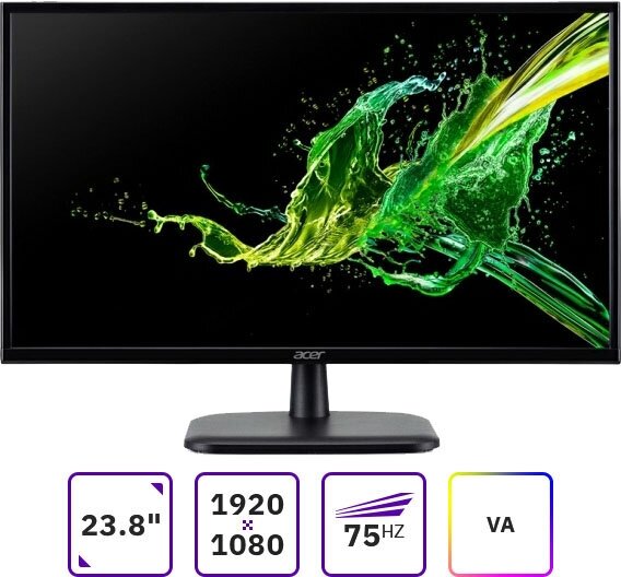 Монитор 23,8" Acer EK240YCbi UM.QE0EE.C01 VA, 1920x1080, 75Hz, 5ms , 178°/178°, 250nits, VGA, 2*HDMI(1.4), Audio Out,Black, FreeSync