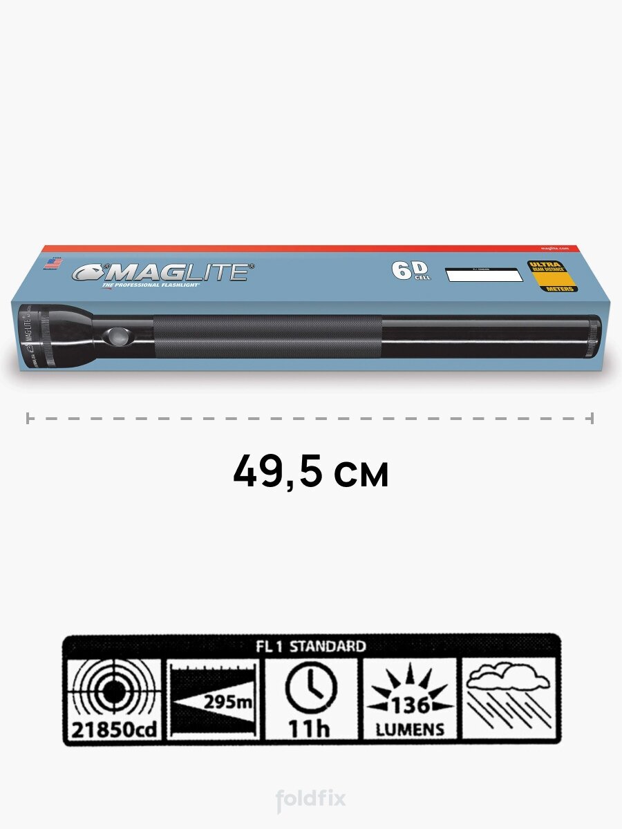 Ручной фонарь Maglite 6D 016 черный в блистере (49,5 см)
