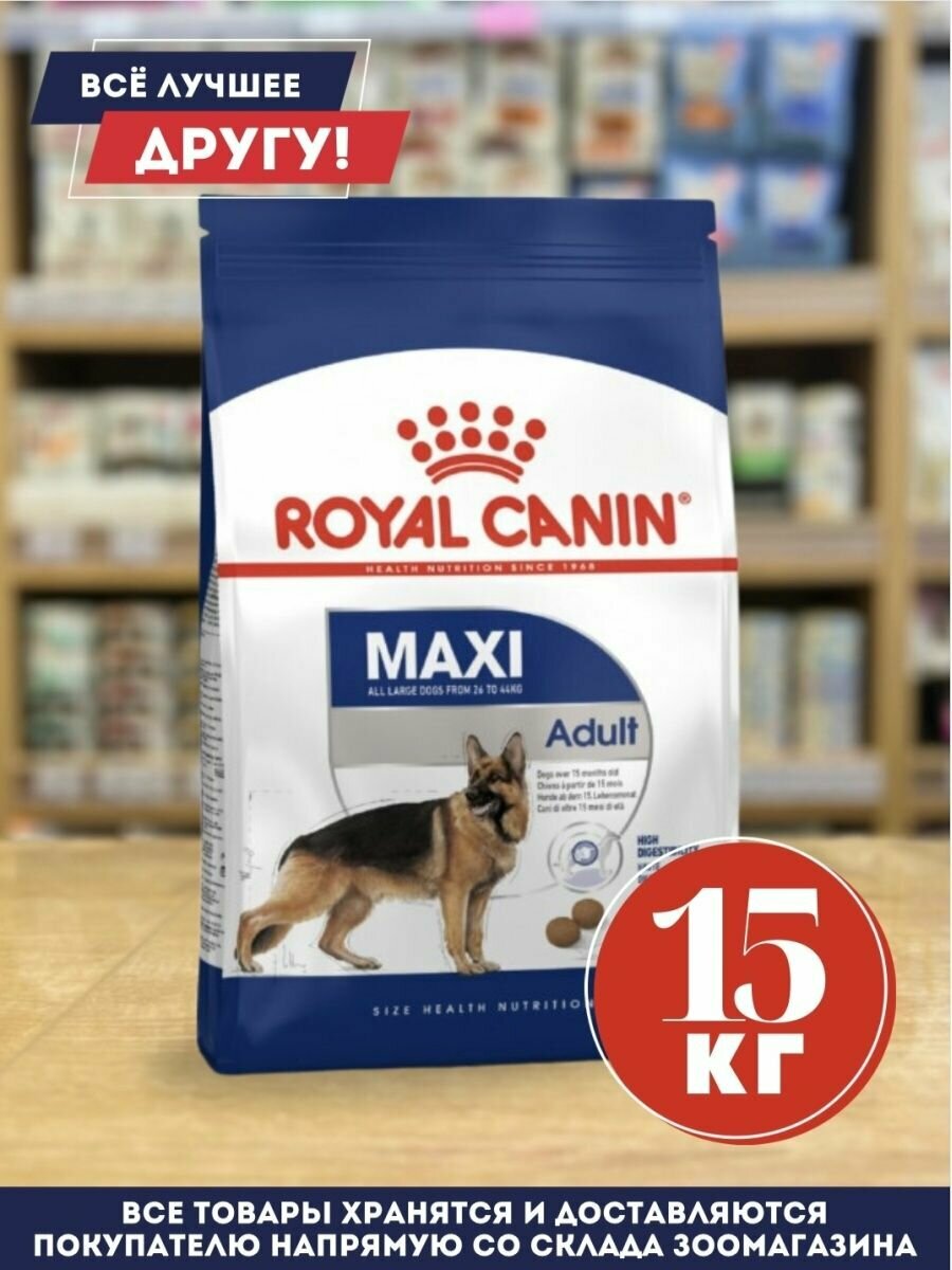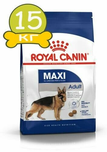 ROYAL CANIN Maxi Adult Сухой корм для собак крупных размеров (вес собаки от 25 до 45 кг) в возрасте c 15 месяцев до 5 лет , 15 кг