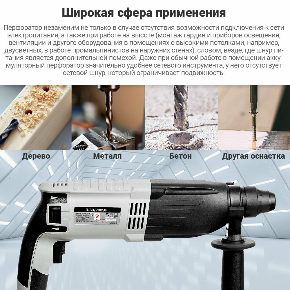 Перфоратор Интерскол П-30/900ЭР, без аккумулятора, 900 Вт