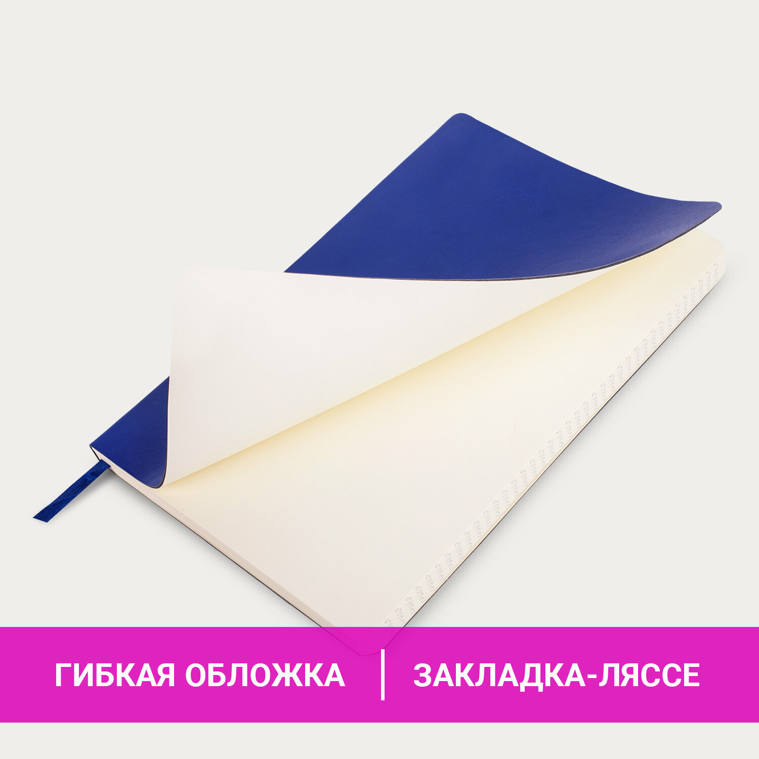 Блокнот А5 148x218мм, BRAUBERG Metropolis Ultra, под кожу, 80л, резинка, клетка, синий, 111017