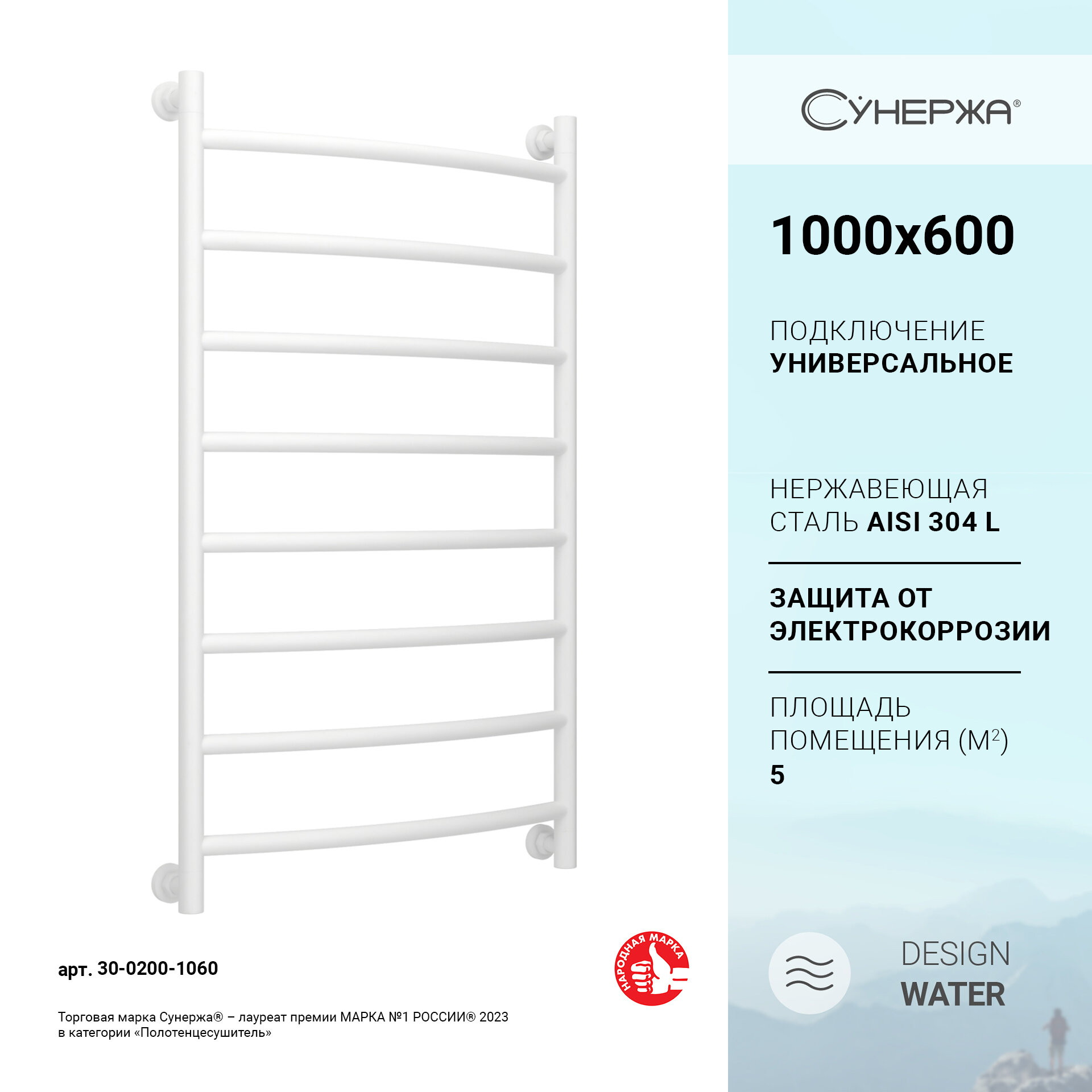 Полотенцесушитель водяной Сунержа Галант+ 1000х600 30-0200-1060 матовый белый