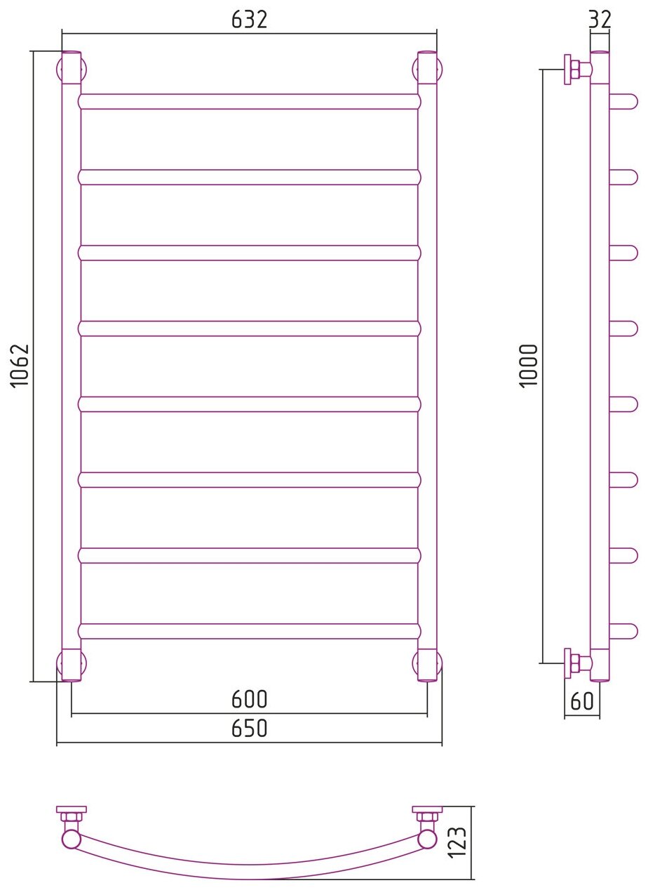 Полотенцесушитель водяной Сунержа Галант+ 1000х600 Без покрытия 00-0200-1060