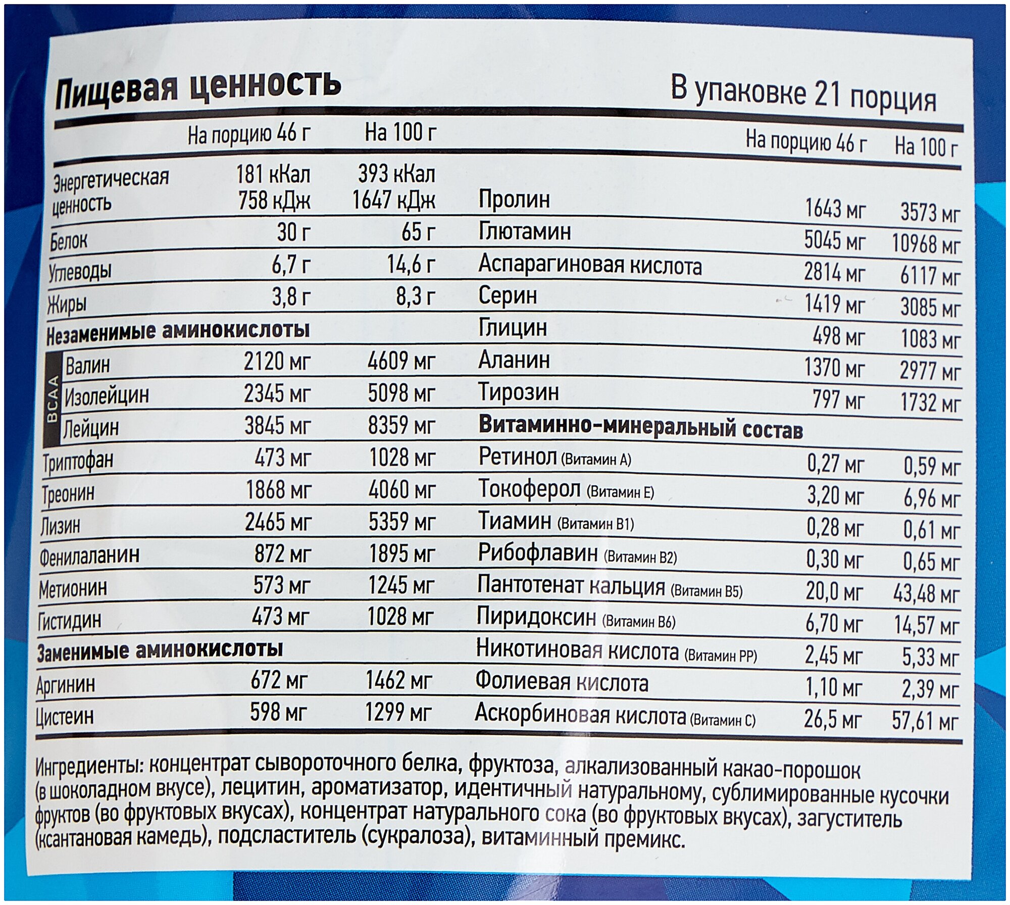- Кол-во белка в порции