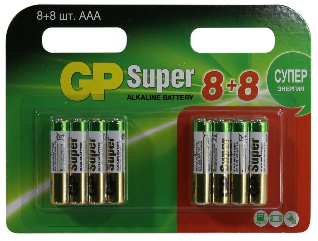 GP Батарейки щелочные (алкалиновые) GP Super, тип AA, 1.5V, 16шт (Пальчиковые) аккумуляторы и батарейки в Курчатов