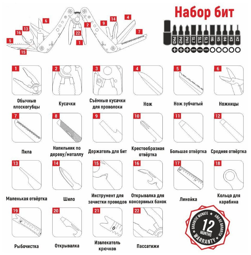 Мультитул Ganzo G201, 105 мм, 22 функций, нейлоновый чехол
