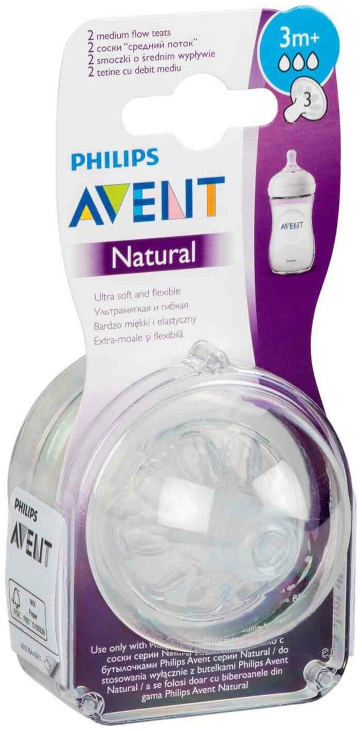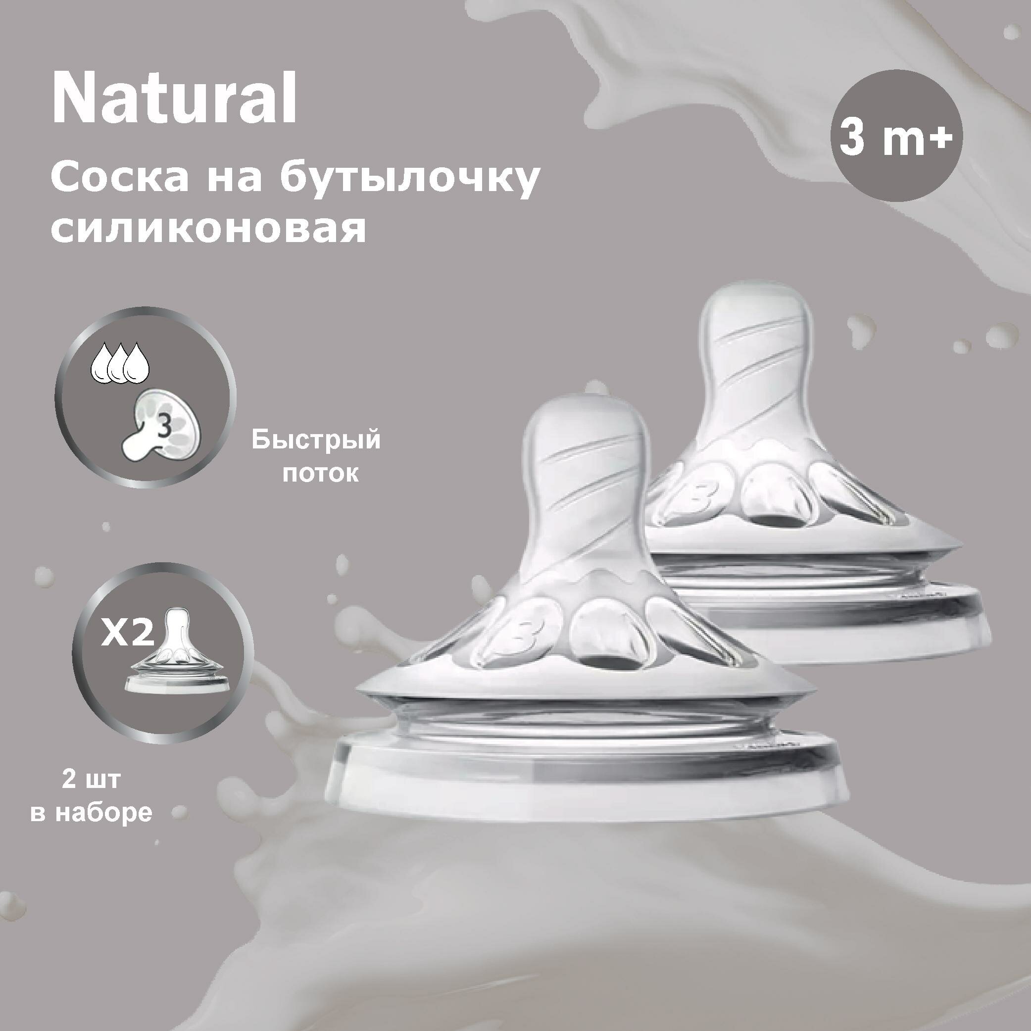 Соска Philips Avent серии Natural средний поток силикон 3 мес.+, 2 шт. SCF043/27