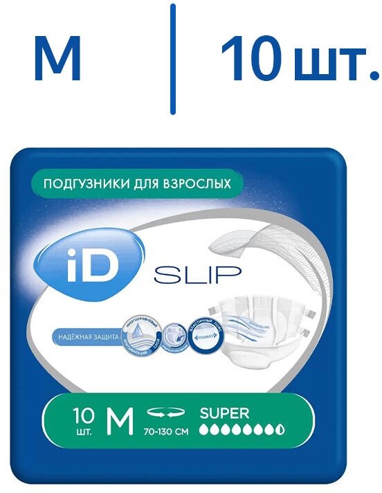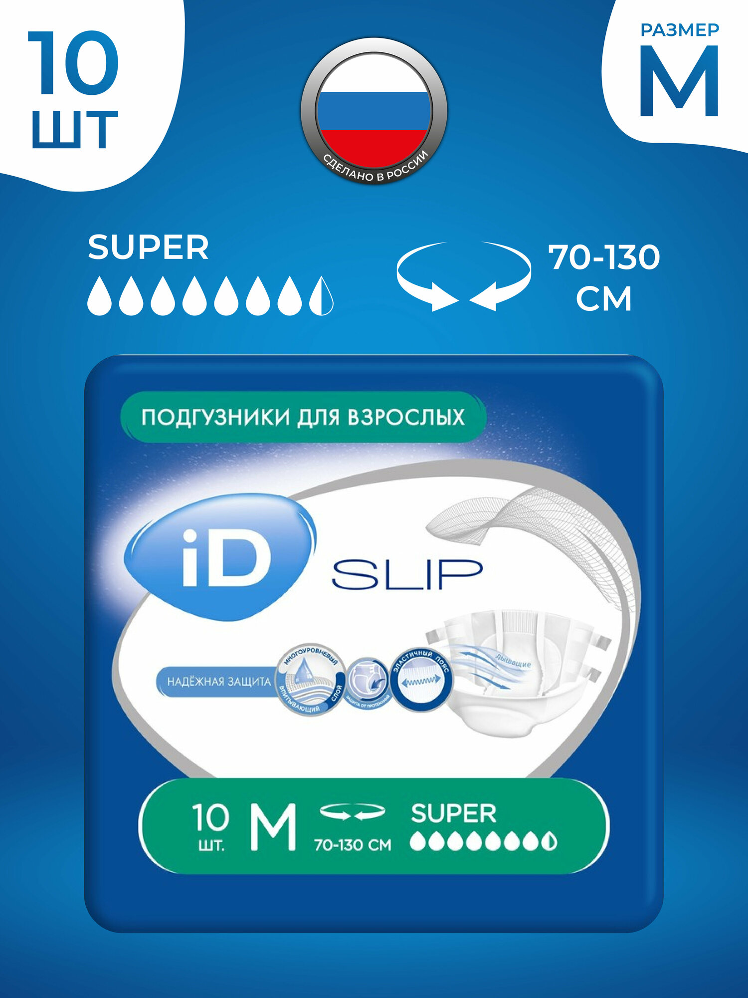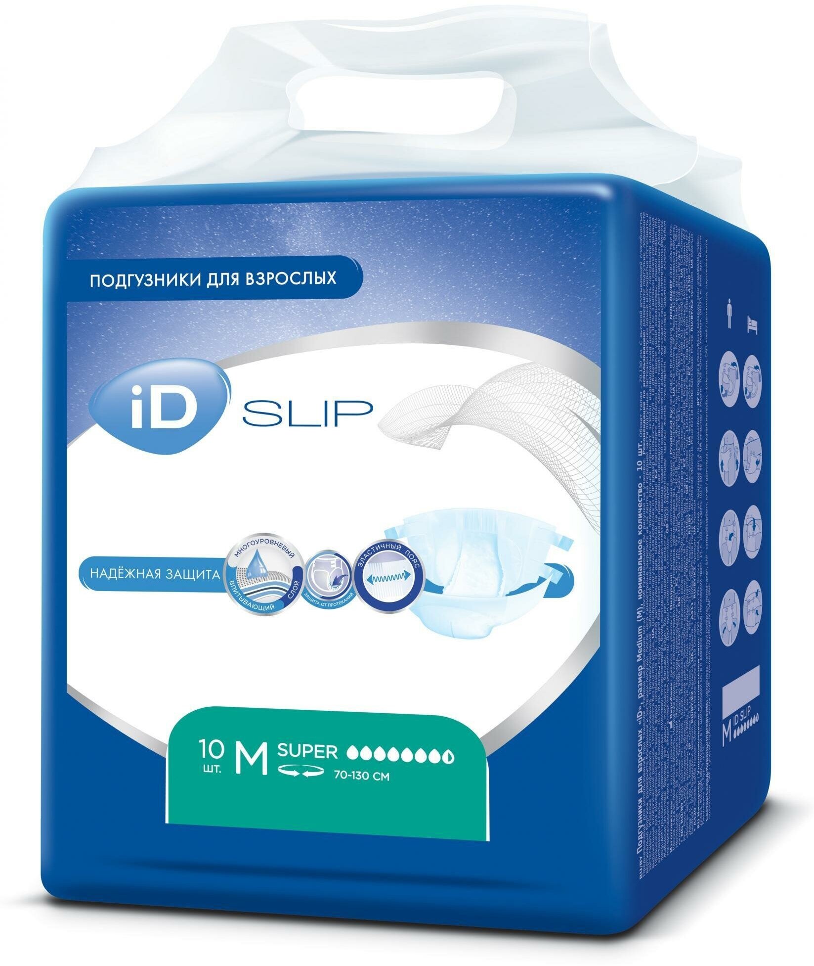 ID Expert Подгузники для взрослых iD Slip Super, M, 70-130 см, 1 уп. по 10 шт. подгузники (памперсы) в Курчатов