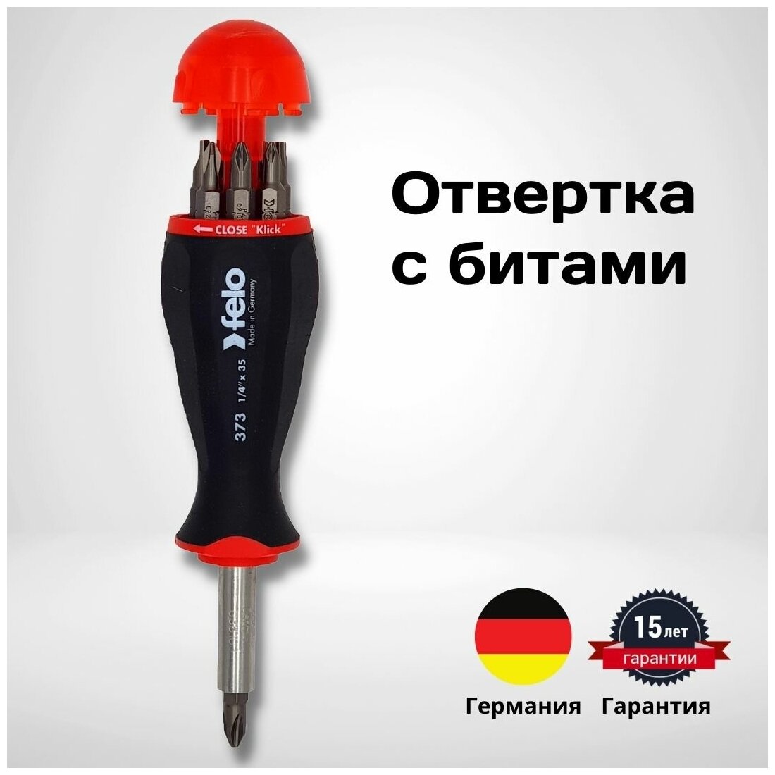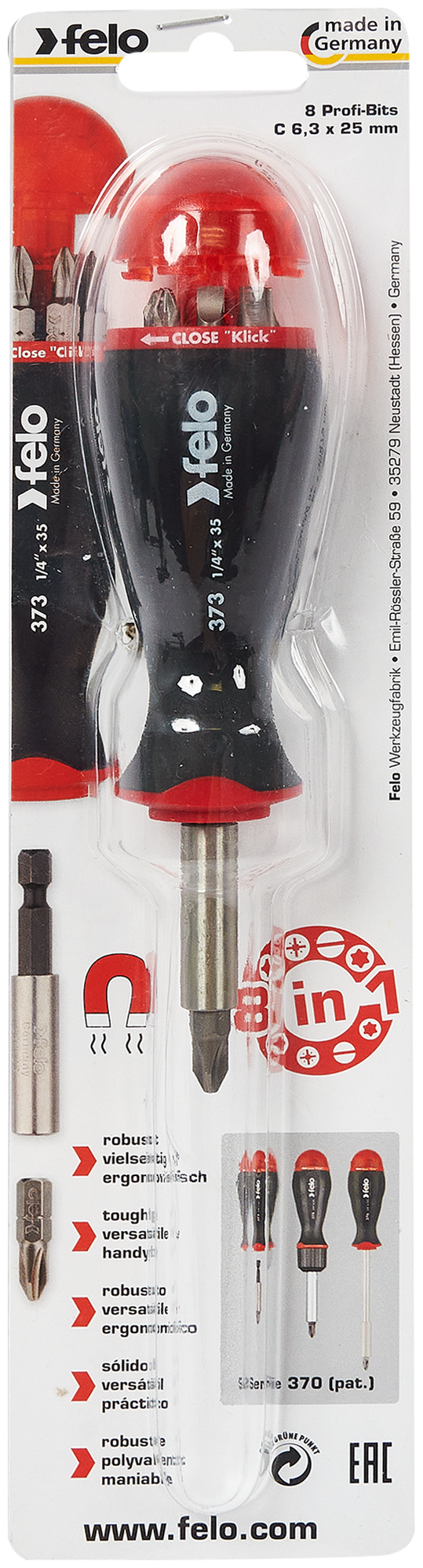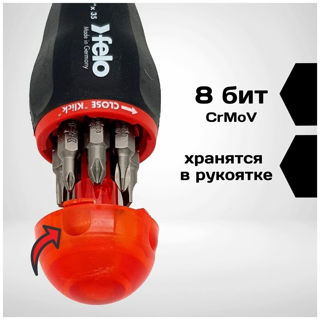 Отвертка с битами с магнитным держателем Felo, 8 бит