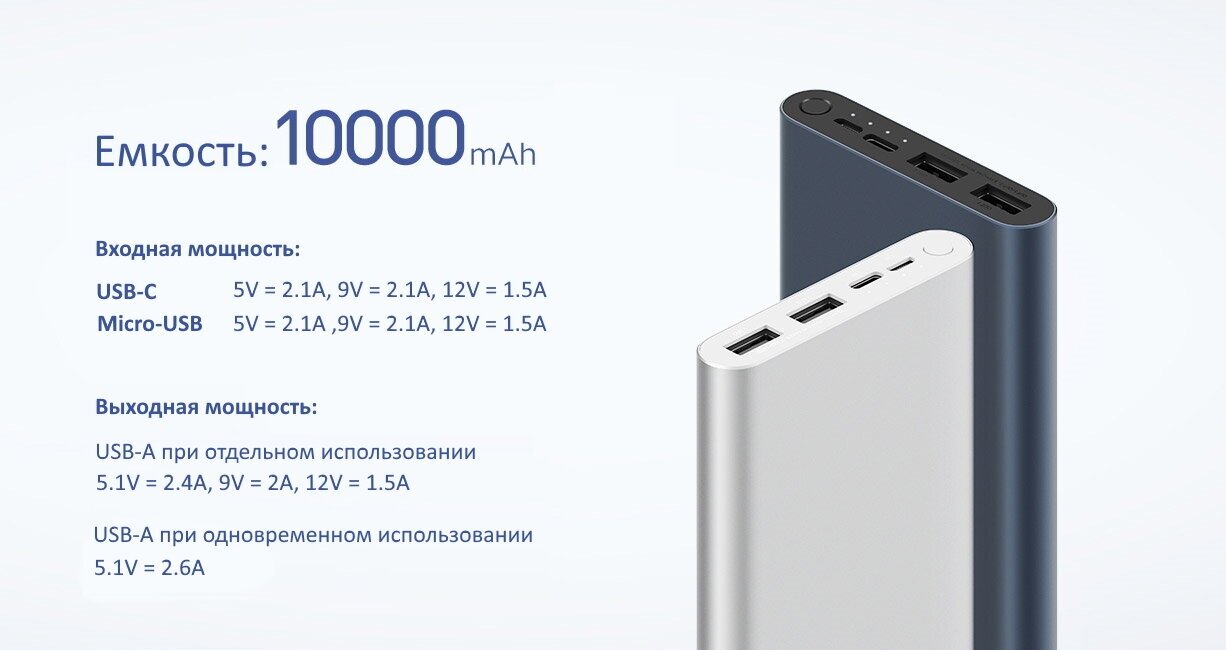 Xiaomi Mi Power Bank 3 10000 mah (серебристый)
