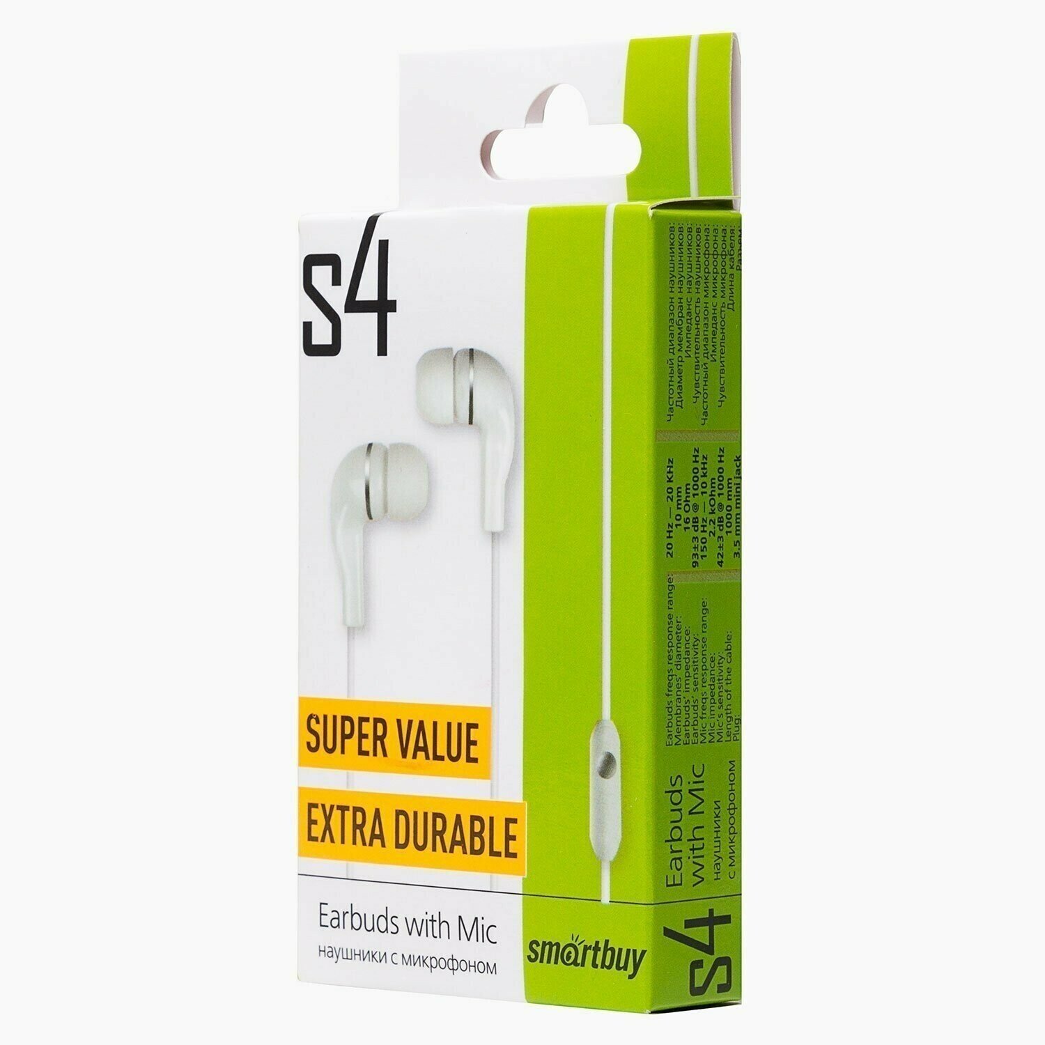 Внутриканальная гарнитура Smartbuy S4, белая, коробка (SBH-012K) /60