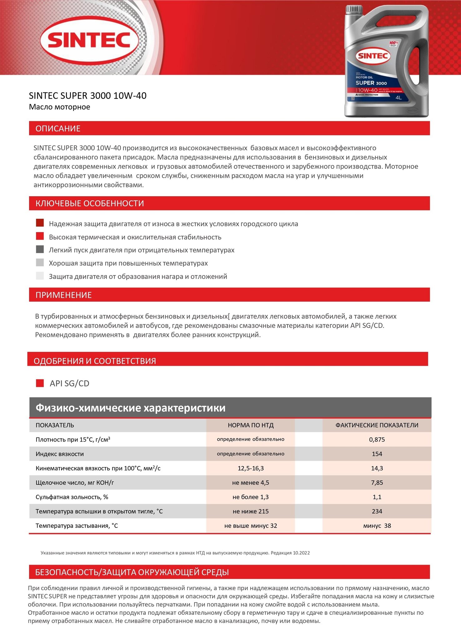 SINTEC Масло Super 3000 10W-40 (Старый Арт. 963265)