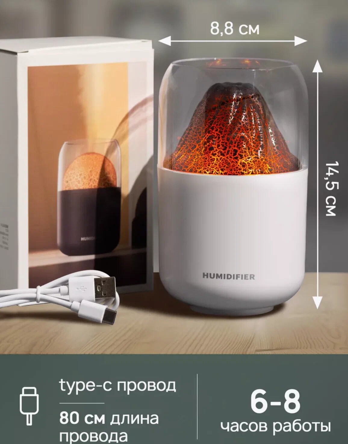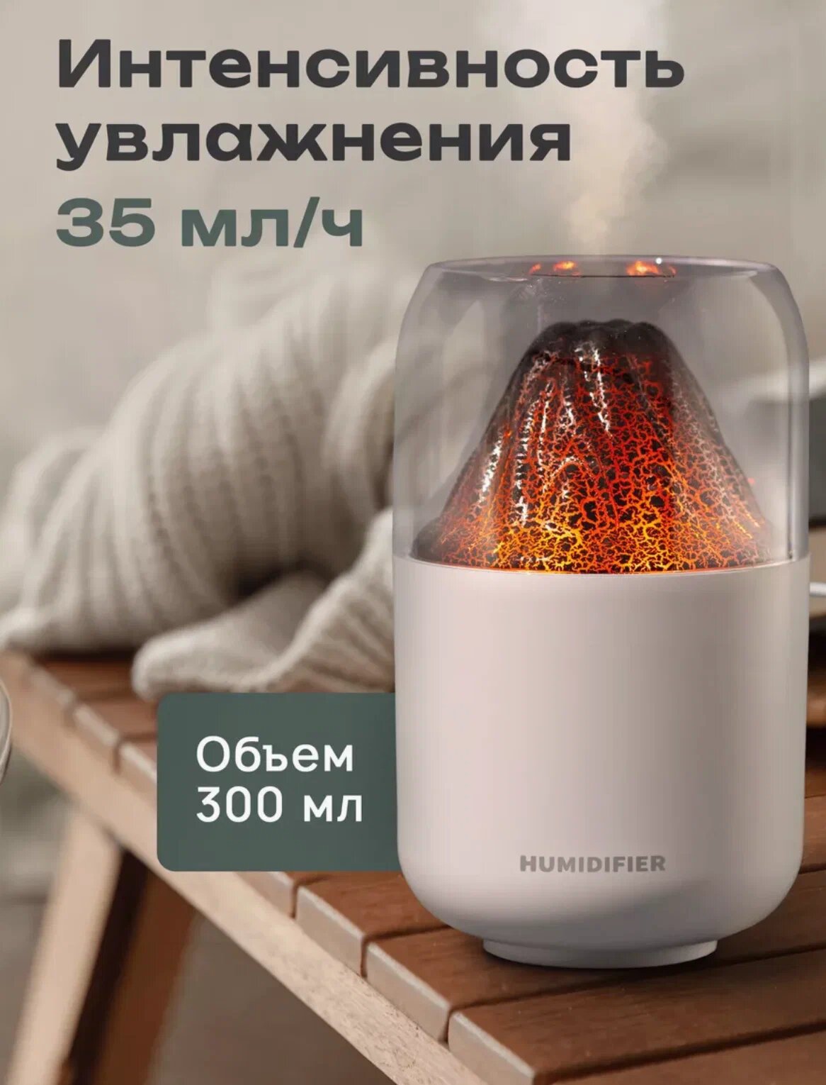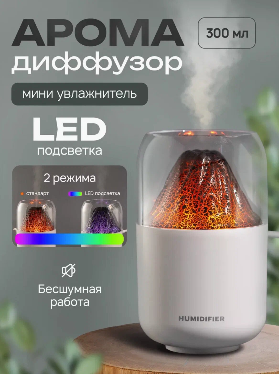 Увлажнитель воздуха для дома H2O/ портативный увлажнитель воздуха/ светодиодный увлажнитель воздуха/ Fire White