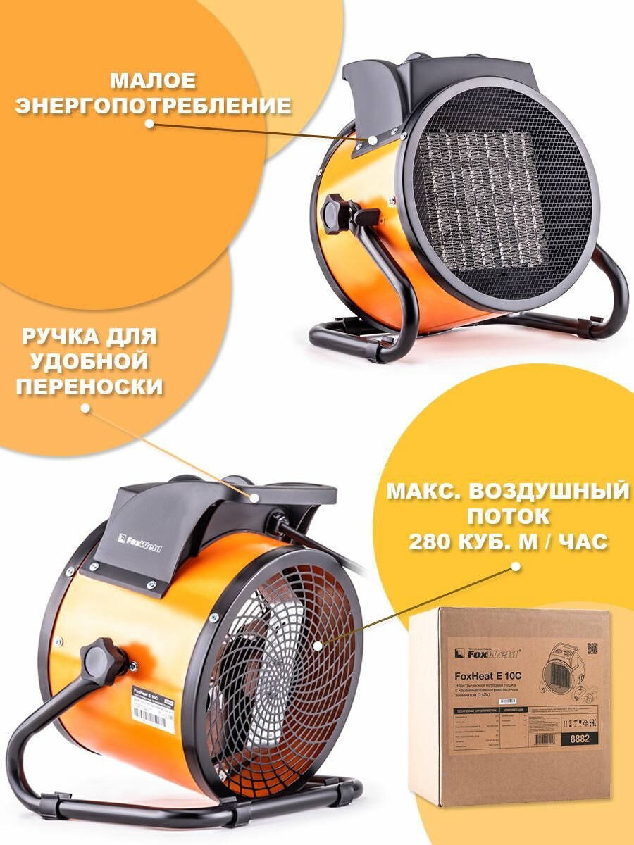 FoxWeld Тепловая пушка напольная электрическая с керамическим нагревательным элементом FOXWELD E10C тепловые пушки в Курчатов