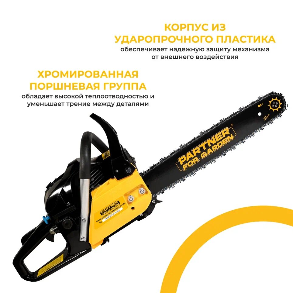 Бензопила цепная / бензиновая цепная пила Partner for Garden GS 520P ( 3,5 л.с, мощность 2,4 кВт, объем двигателя 49,3 см3 , длина шины 20" - 50 см )