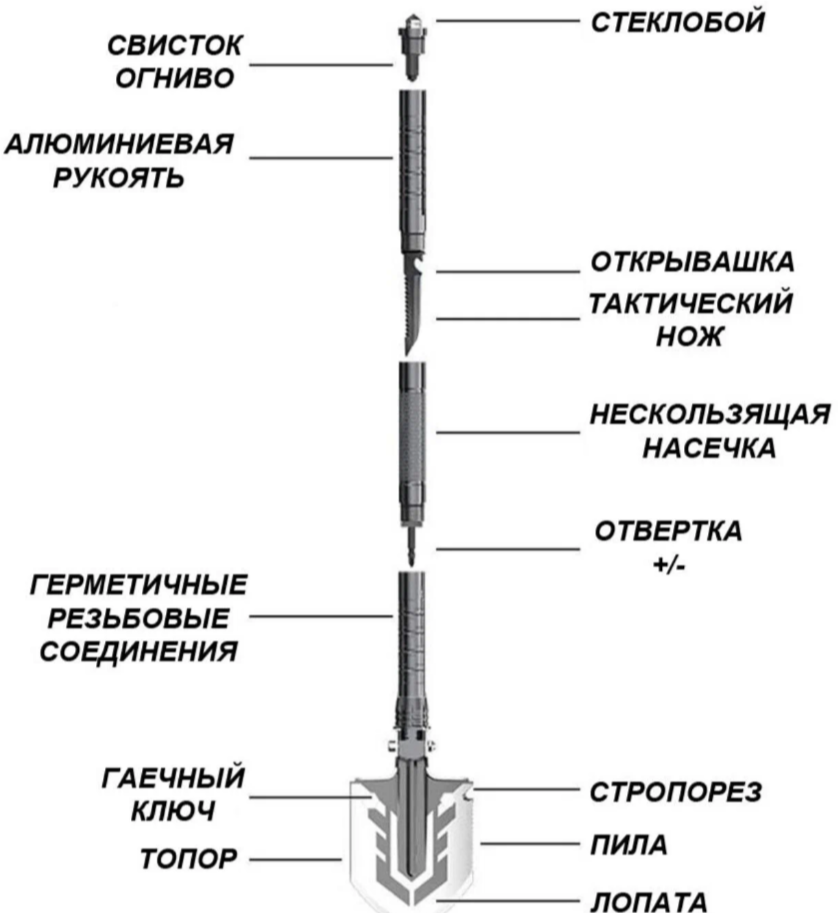 Dedra Лопата – мультитул складная, многофункциональная, тактическая, саперная, штыковая, автомобильная, туристическая ; с фонарем лопаты в Курчатов