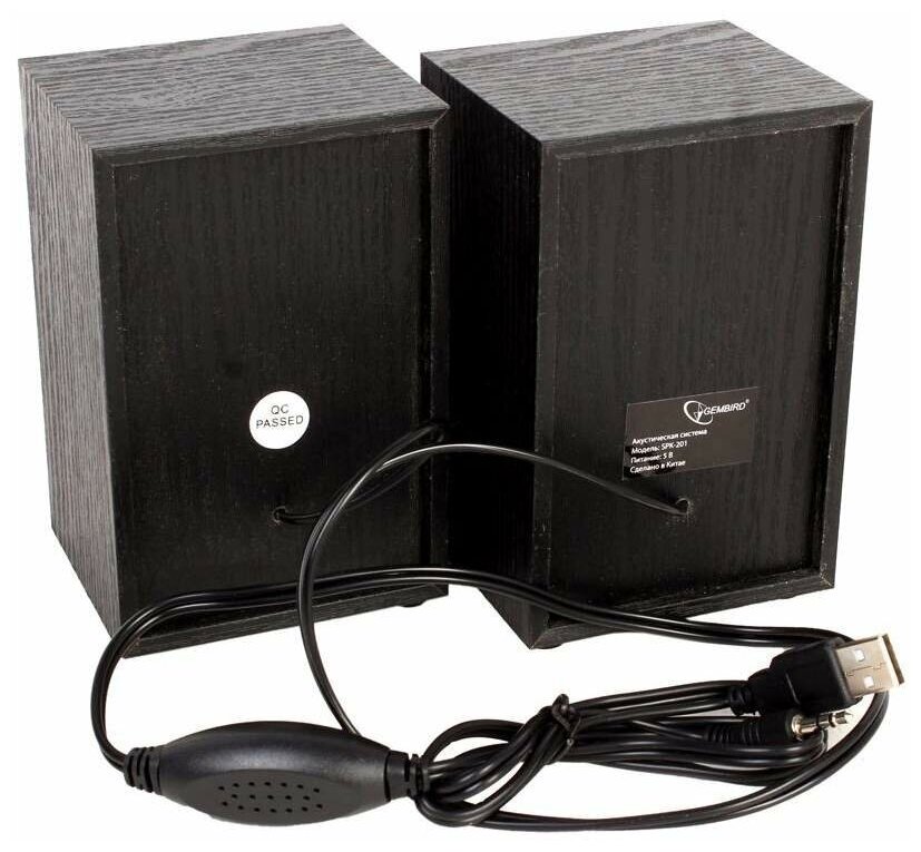 Колонки Gembird SPK-201 2.0, МДФ, черный, 5 Вт, регулятор громкости, USB-питание