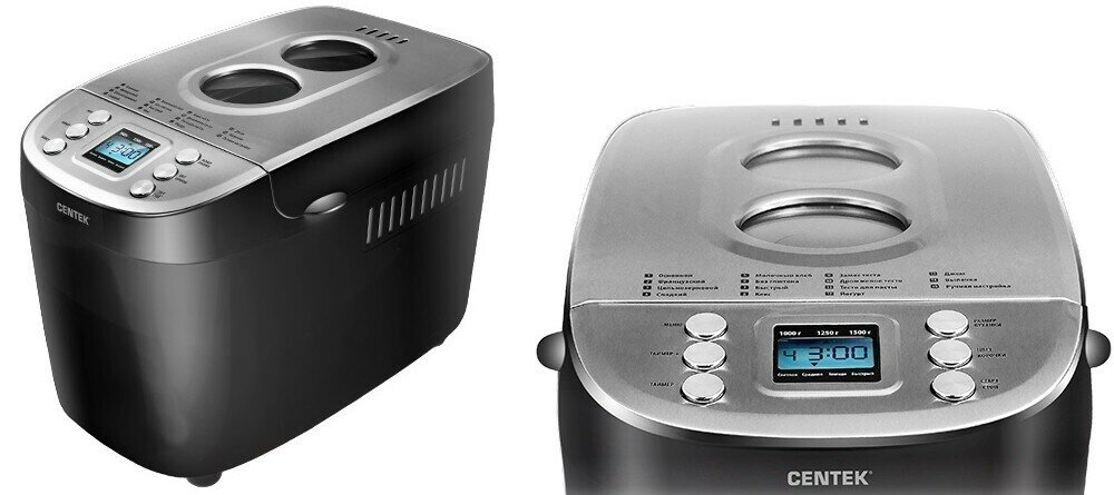 Хлебопечка Centek CT-1415 1500 г большой объём, 860Вт, 15 программ, таймер, LCD, окошко цвет черный