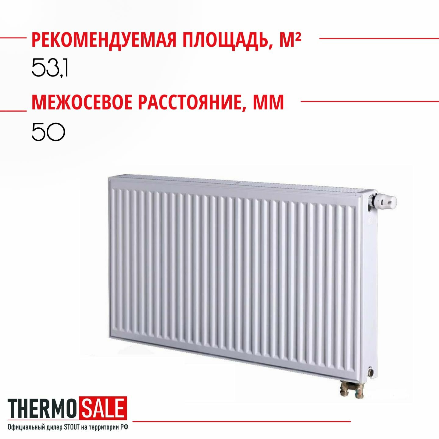 Радиатор панельный "ROMMER" Ventil , тип 22 , 500 х 1200 , 26,2 м2, подключение нижнее, правое.