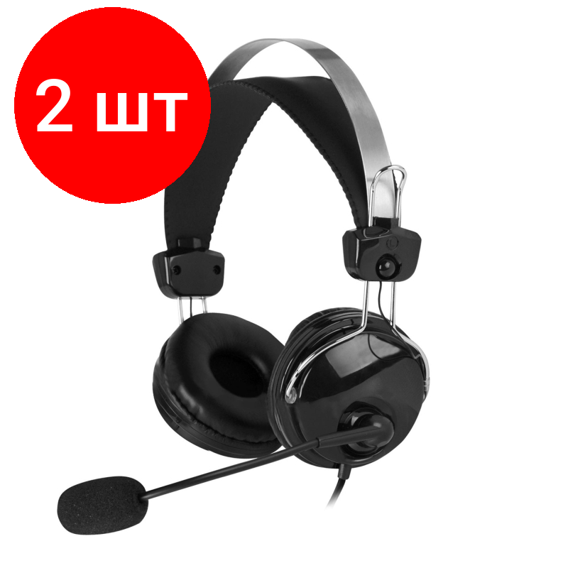 Eightt Комплект 2 штук, Гарнитура A4Tech (HU-7P) черный 2м накладные USB наушники в Курчатов