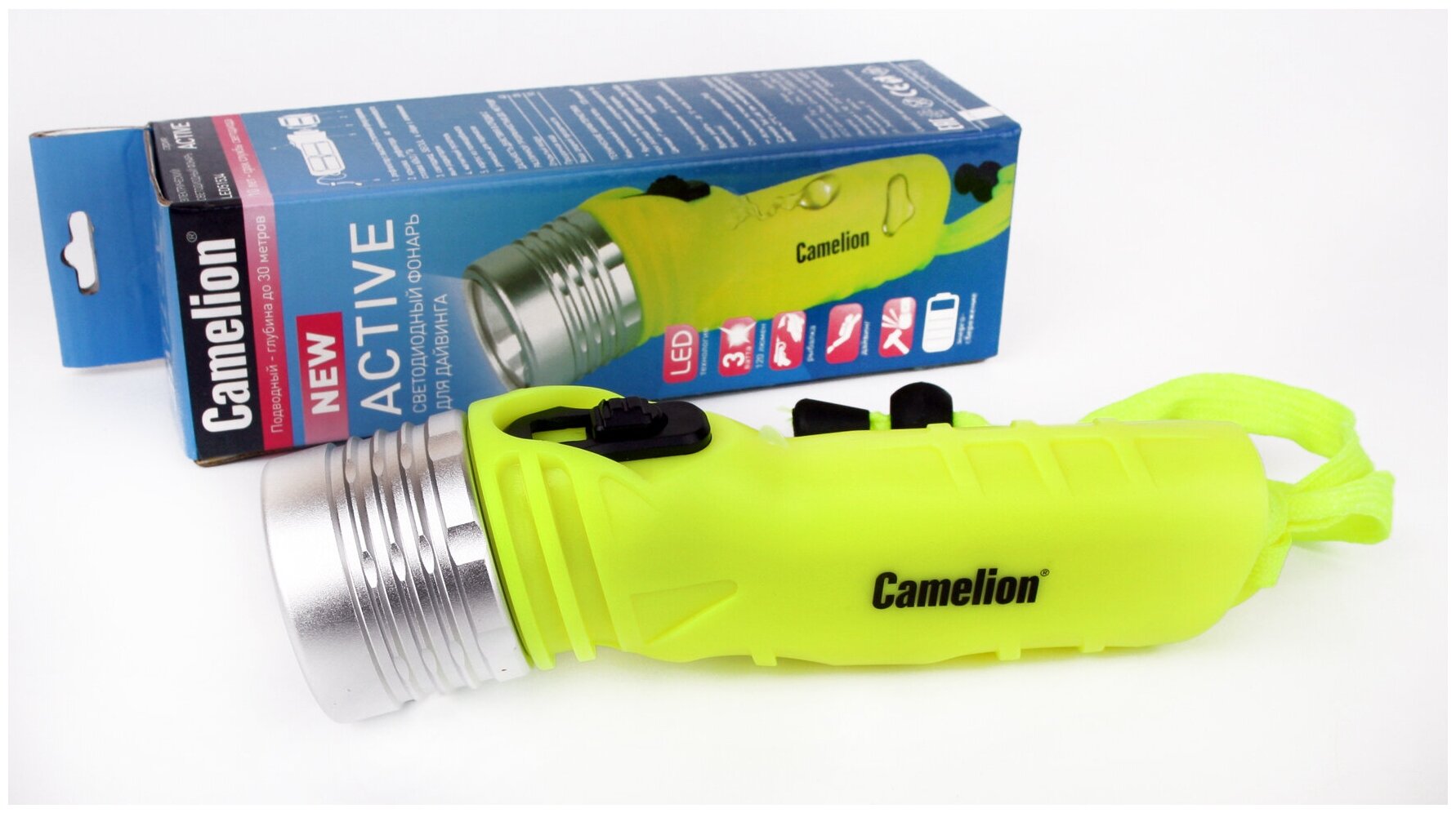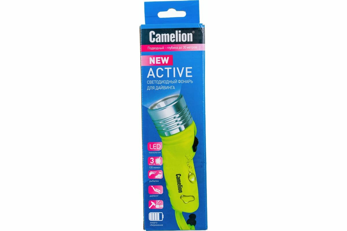 Фонарь подводный светодиодный IP68 до 30 метров на батарейках АА 13360 Camelion Active LED51534
