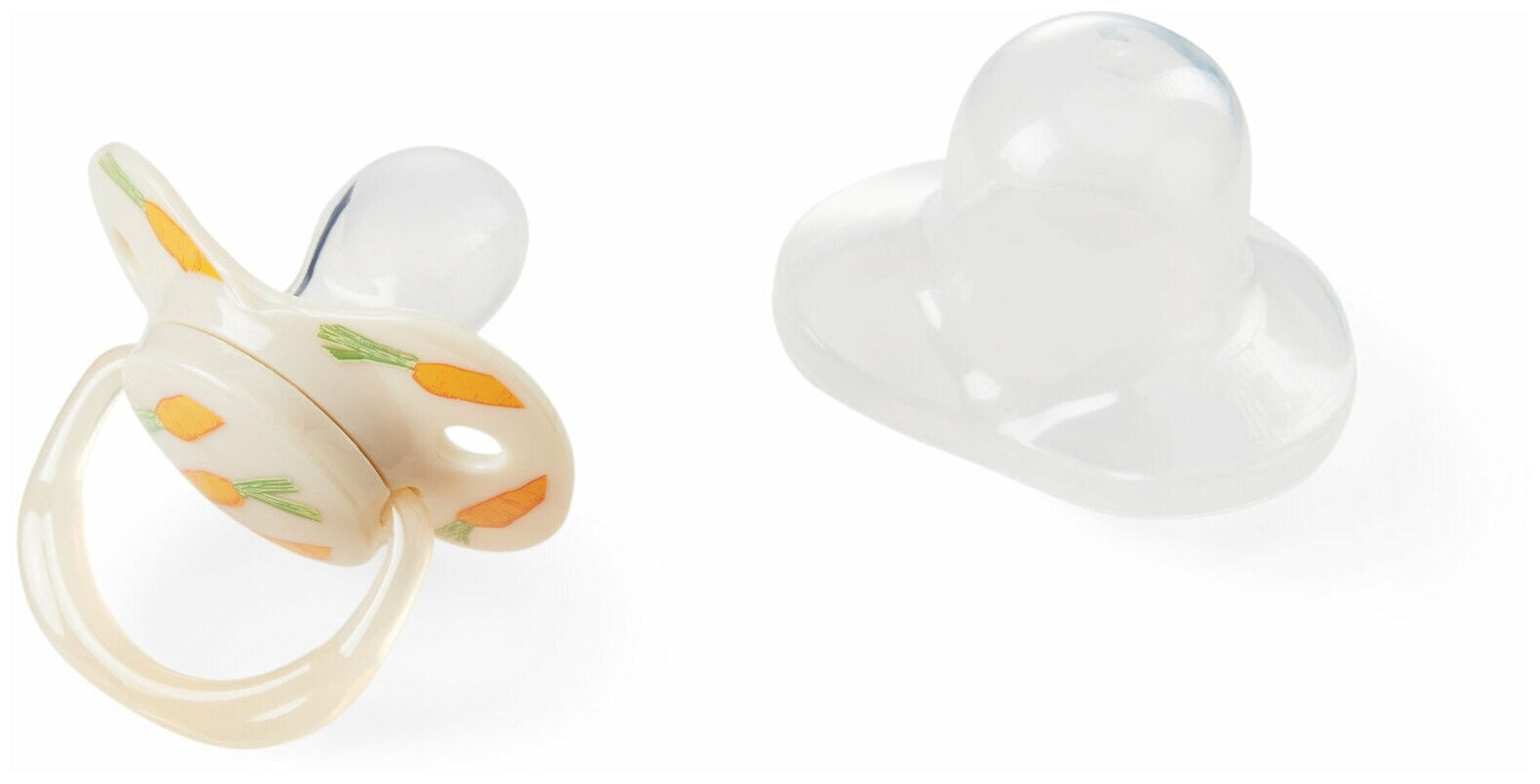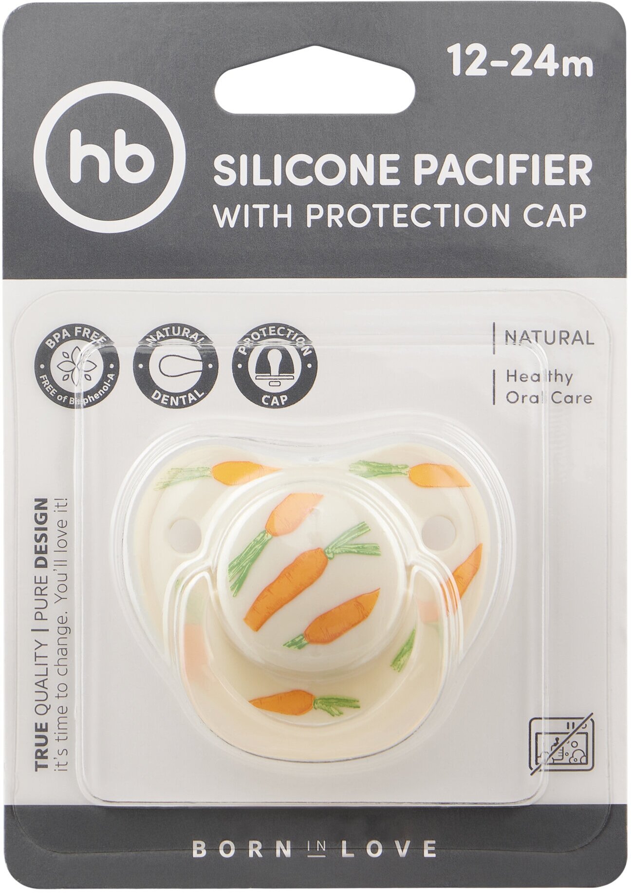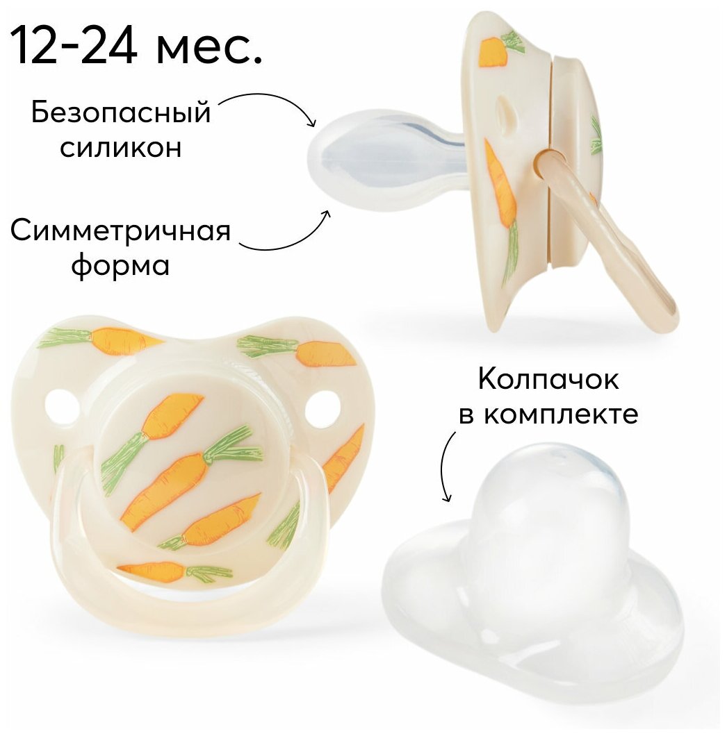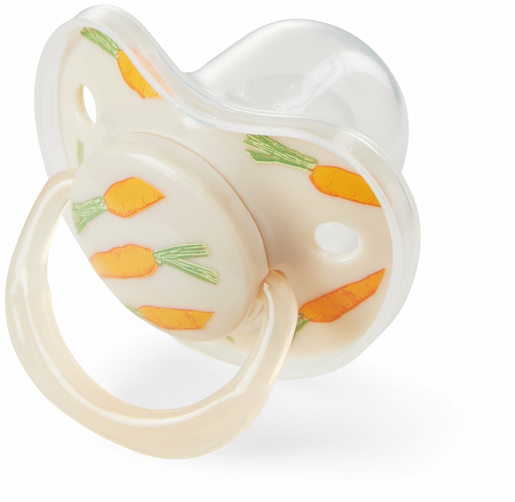 13008/1, Соска-пустышка 12-24м Happy Baby, силикон, капля с колпачком, бежевая с морковками