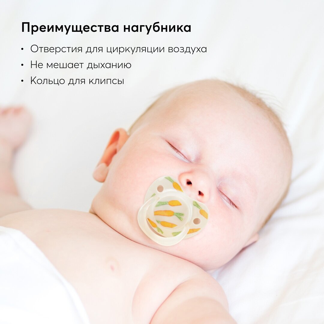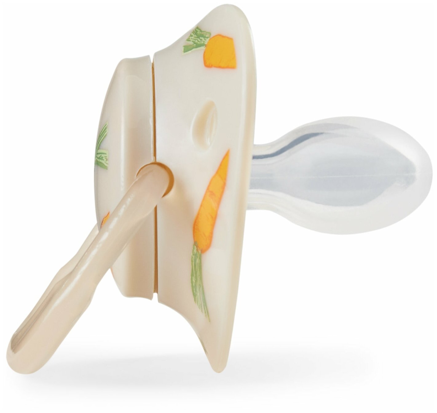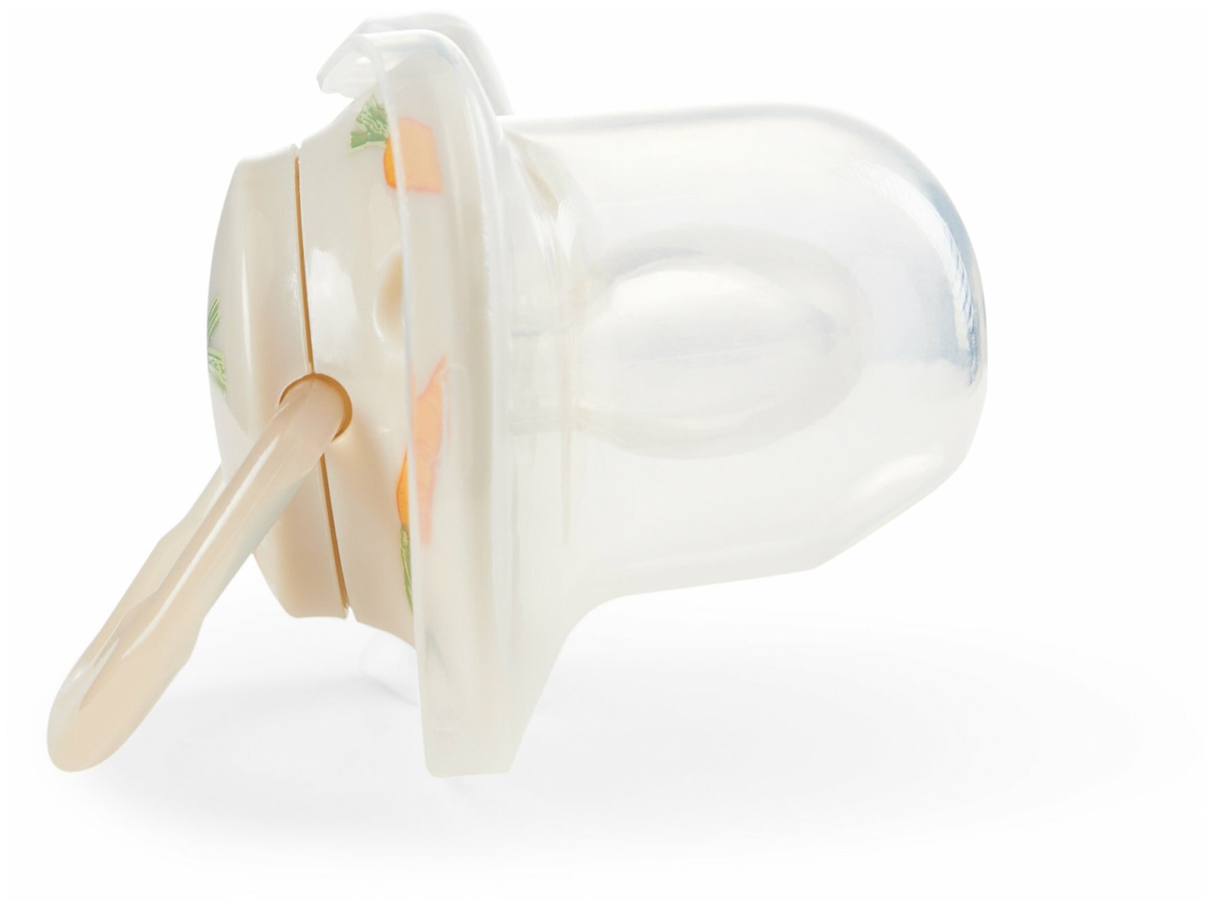 13008/1, Соска-пустышка 12-24м Happy Baby, силикон, капля с колпачком, бежевая с морковками