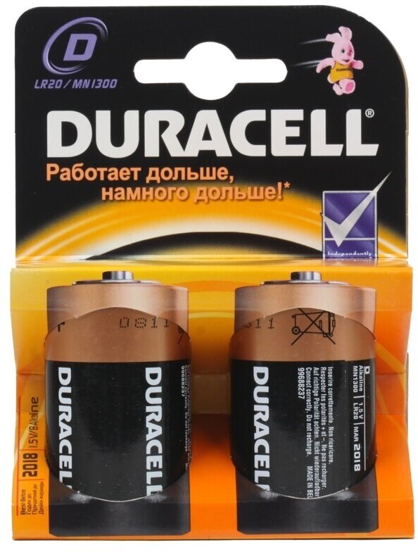 Цена для г. Микунь. Батарейки Duracell размера D — универсальные щелочные батарейки, которые станут надёжным источником питания для часто используемых устройств, нуждающихся в дополнительной мощности. Благодаря особой технологии Duralock неиспользованные батарейки Duracell могут сохранять заряд до 10 лет при хранении в обычных условиях. Магазины в городе Микунь смотрите ниже
