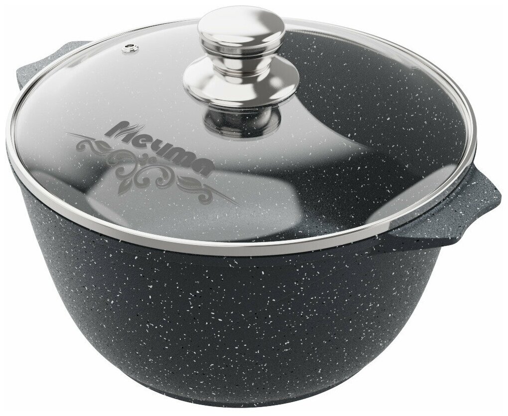 Кастрюля Мечта Гранит Black литая с антипригарным покрытием, со стеклянной крышкой, 6л, гранит black