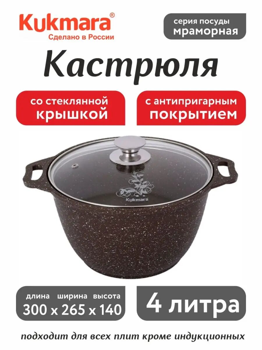 Кастрюля 4 л KUKMARA кмт42а, алюминий, темный мрамор