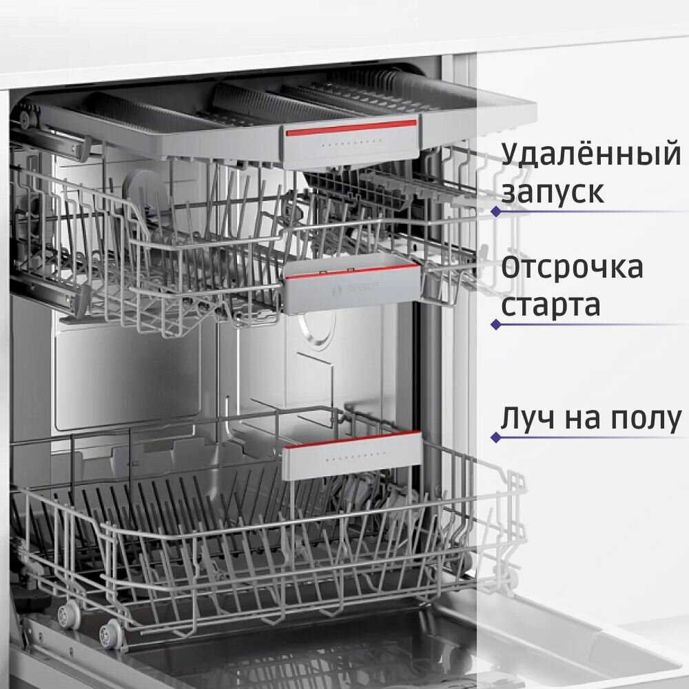 Встраиваемая посудомоечная машина Bosch SMV4HVX31E [60 см, 13, пр.-6, полная (корпус+шланг), дисплей, теплообм., луч на полу, серебристый]