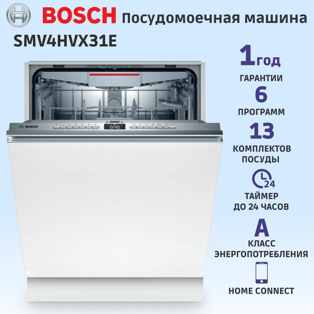 Встраиваемая посудомоечная машина Bosch SMV4HVX31E [60 см, 13, пр.-6, полная (корпус+шланг), дисплей
